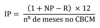 NP é o Número de Pontos conforme a produção e atividades no CBCM (ver anexo IV). Caso o orientando tenha mudado de orientador, o tempo de meses no CBCM deve ser substituído pelo tempo de meses de matrícula no PPG3M.